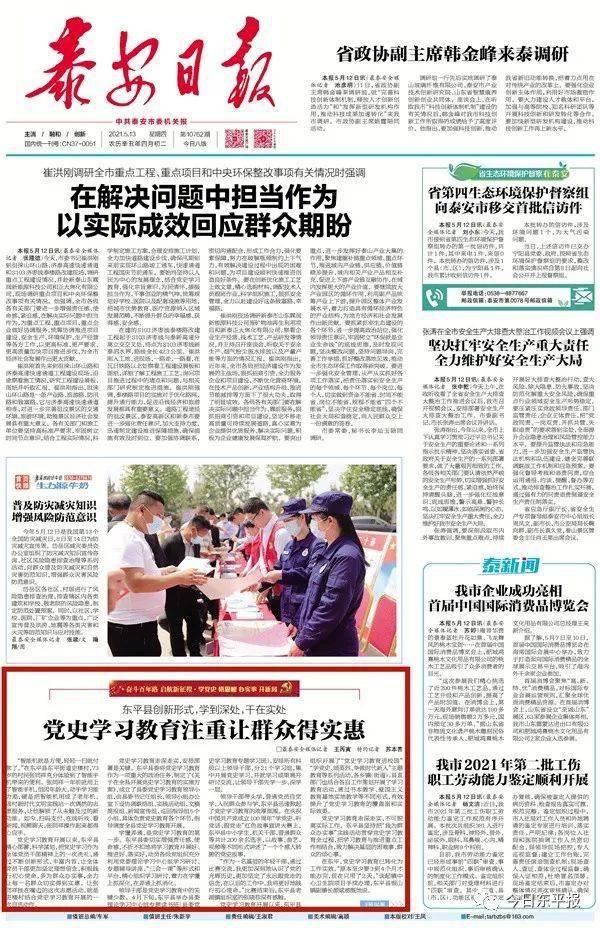 年途 启航新征程》专栏☛《泰安日报》《搏斗百,县改进式子以《东平,深处学到,器重让全体得实惠》为题干正在实处 党史练习教化,练习教化的亮点纷呈头版报道我县党史,卓著效果。