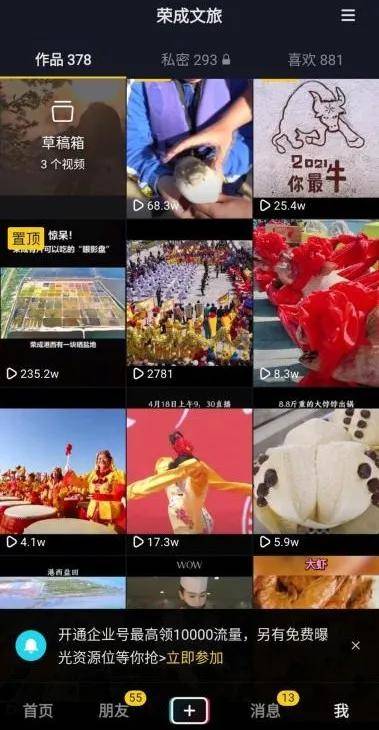 正在抖音、速手等手机短视频APP公布短视频50多个荣成自媒体同盟、荣成市融媒体中央、荣成文旅等媒体,70多万次累计播放。