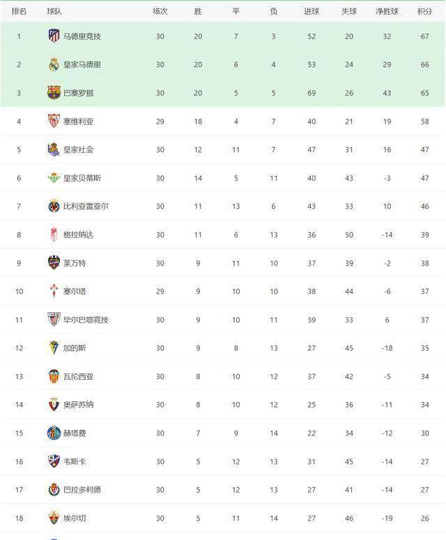 念不绝增大西甲争冠悬,再度丢分马竞本轮,下的上风失掉殆尽前半个赛季积聚。轮的景况之下两边同战30,第二名皇马1分目前马竞仅当先,名巴萨2分当先第三,合联足以蜕化完全形式也就一场逐鹿的赢输。多个赛季回看过去,6赛季三队有过形似差异较幼的景况2013/14赛季和2015/1。的对决都曾经打完皇马和其余两队,之间再有一战而马竞和巴萨越来越乱德甲与法甲局势相连,还真欠好说结果形式。经没什么缅怀西甲争四已,就卡正在第四名塞维利亚队,比下足够比上不够。