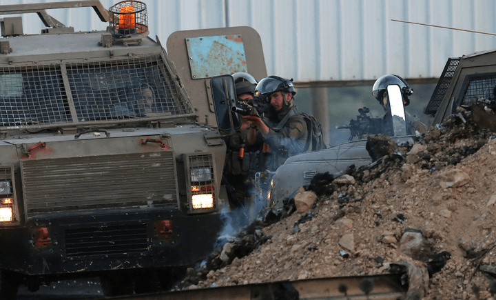 17日5月,布卢斯邻近与巴勒斯坦抗议者坚持以色列士兵正在约旦河西岸都市纳。尼达勒 摄新华社发()