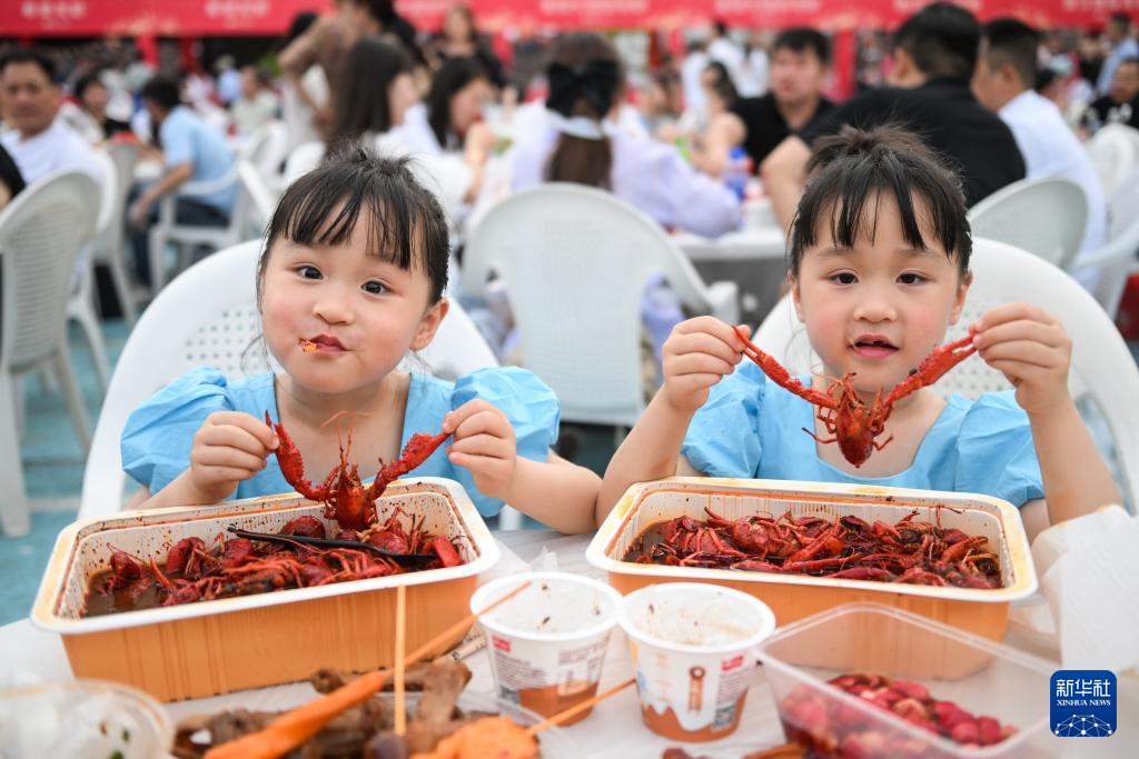 13日6月,眙龙虾节万人龙虾宴上品味美食一对双胞胎幼诤友正在第24届盱。