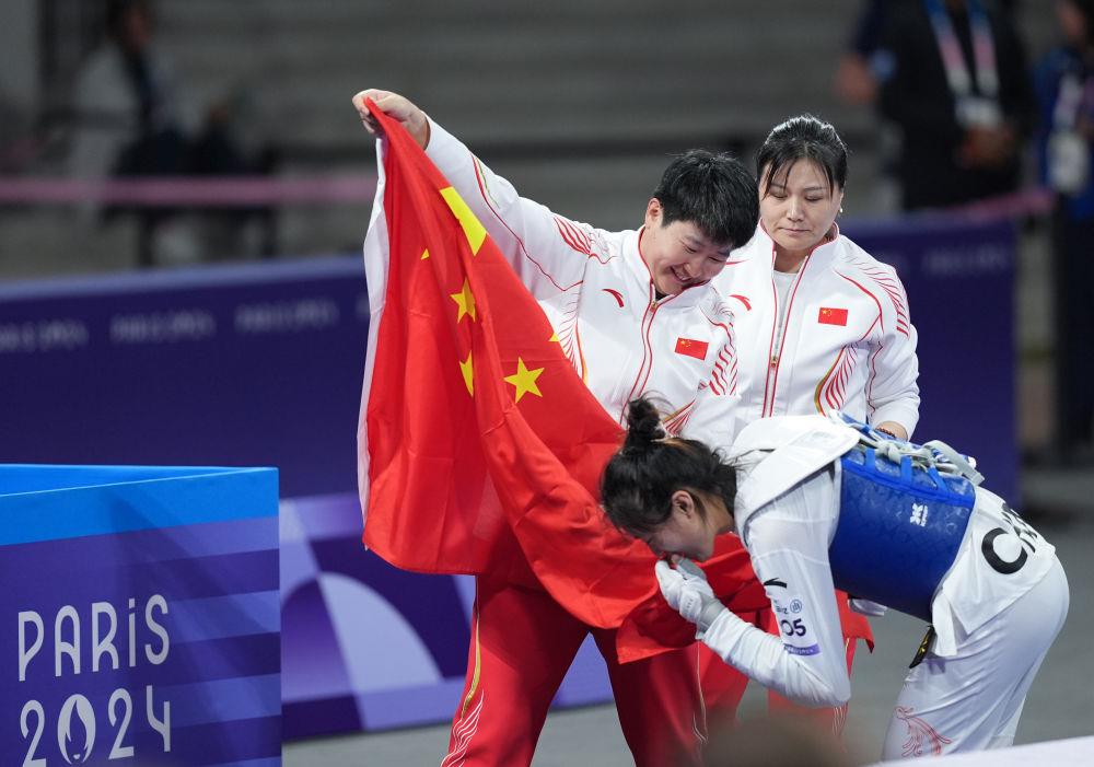 24年8月30日△本地岁月20,)正在夺冠后亲吻国旗中国选手李羽洁(下。女子K44级57公斤级决赛中正在当晚举办的巴黎残奥会跆拳道,首枚残奥会跆拳道金牌李羽洁为中国队取得。